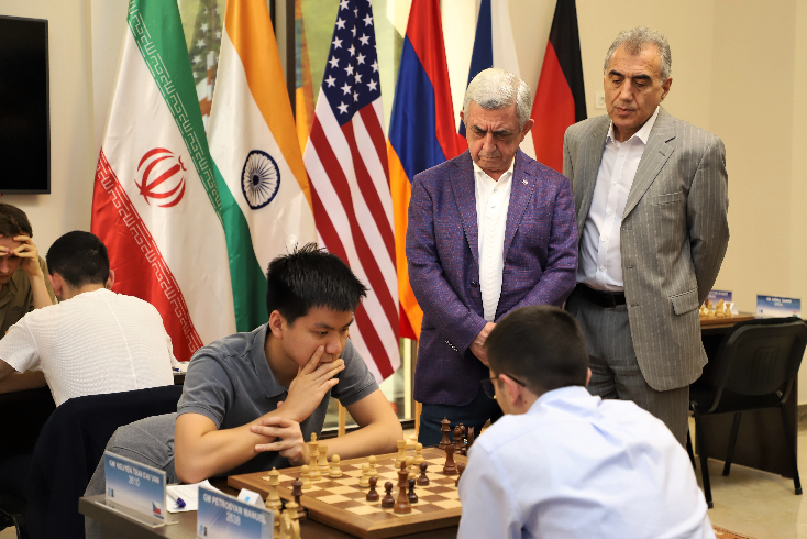 2022-06-23Today, the President of the Armenian Chess Federation Serzh Sargsyan, and the First Vice-President Smbat Lputyan, came to follow the games of the third round of the 16th category RR tournament dedicated to the memory of Stepan Avagyan.